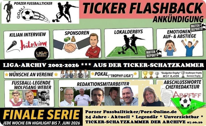 Am 7. Juni 2026 wird beim Porzer Fußballticker der letzte Abpfiff ertönen. Doch bevor wir die Tastaturen endgültig zuklappen und die digitalen Tore schließen, wollen wir gemeinsam mit euch noch einmal die Reise durch die Zeit antreten.