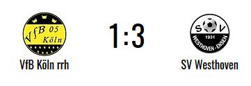 Erfolgreich nachgelegt hat Absteiger SV Westhoven-Ensen. Nach dem gelungenen Saisonauftakt vs. TuS Langel, konnte die Mannschaft von Trainer Koura beim VfB 05 Köln mit einem 3:1 (3:1)-Auswärtssieg den nächsten Dreier einfahren. Am nächsten Wochenende erwartet man den RSV Urbach zu einem Porzer Derby.