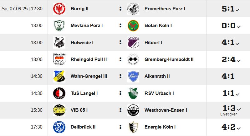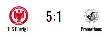 Nach dem Auftakt-Remis in der vergangenen Woche kassierte der hochgehandelte GSV Prometheus Porz bei Roland Bürrig eine fette 5:1 (2:1)-Schlappe. Die Gäste hatten im zweiten Abschnitt mehr zuzusetzen, womit die Sitoriou-Truppe immer noch auf den ersten Saisonerfolg wartet.