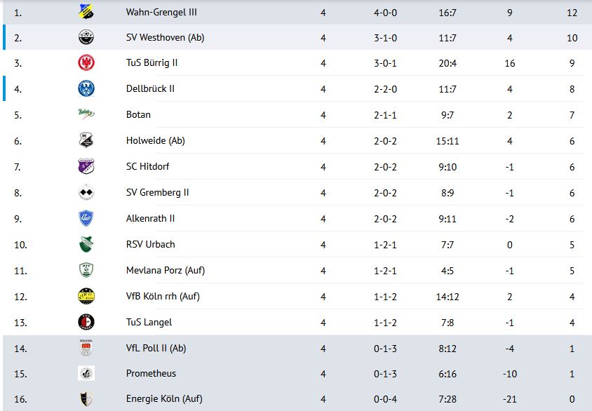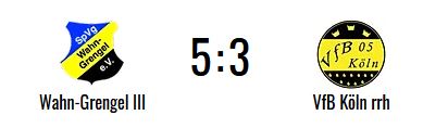 Auch in der Kreisliga C, Staffel 3, heißt die Mannschaft der Stunde die SpVg. Wahn-Grengel III. Mit einem hart erkämpften 5:3 (2:2-Arbeitssieg über den VfB 05 Köln fuhr die Choko/Haydar-Elf den vierten Sieg im vierten Match ein und grüßt von der Tabellenspitze. Überragender Akteur auf Seiten der SpVg. war wieder einmal Khodida mit vier Treffern. Nächsten Sonntag geht’s zum Auswärtsspiel bei Adler Dellbrück II.