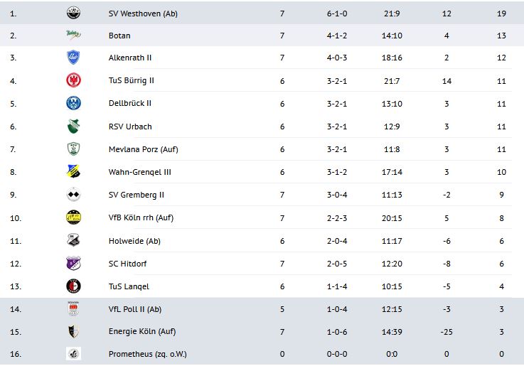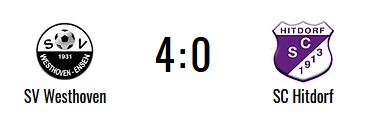 Der SV Westhoven-Ensen kam gegen den SC Hitdorf zu einem erwartungsmäßigen 4:0 (0:0)-Heimsieg. Damit konnte die Koura-Elf weiter ihre Tabellenführung verteidigen und bleibt weiter als einzige Ligamannschaft ungeschlagen. Für den SVW trafen Besgen (50./57.), Saitkasymov (86.) und Prescha (90+3). Am nächsten Wochenende gastiert die Elf bei Roland Bürrig II.