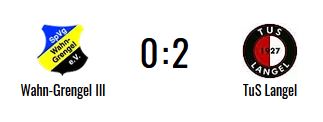 Die SpVg. Wahn-Grengel III zog im kleinen Derby gegen TuS Langel mit 0:2 (0:1) diesmal den Kürzeren. Während die Grengeler weiter im Liga-Mittelfeld positioniert sind, machte der TuS wichtigen Boden gut und arbeitete sich vor auf Rang 10. Die Altrock-Elf konnte den Abstand zur schwarzen Zone auf fünf Punkte ausbauen. Langel empfängt nächste Woche Roland Bürrig und Wahn-Grengel reist zum RSV Urbach.