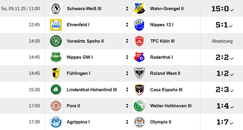 Die Serie der zweistelligen Niederlagen für die SpVg. Wahn-Grengel II wurde am Sonntag bei SW Köln fortgesetzt. Am Ende hieß es 15:0 (7:0) für den Gastgeber, womit die Elf weiter am Tabellenende bleibt. Am Sonntag kommt die SpVg. Porz II in die Nachtigallen-Arena.