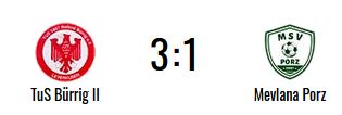 Aufsteiger SV Mevlana Porz verlor am gestrigen Nachmittag die Auswärtsbegegnung bei Roland Bürrig mit 3:1 (2:0). Nach einer 2:0-Paisenführung machten die Leverkusener nach einer Stunde alles klar. Mevlana gelang im Schlussviertel noch eine Resultatsverbesserung. Am nächsten Sonntag erwartet der Neuling den VfL Poll II.