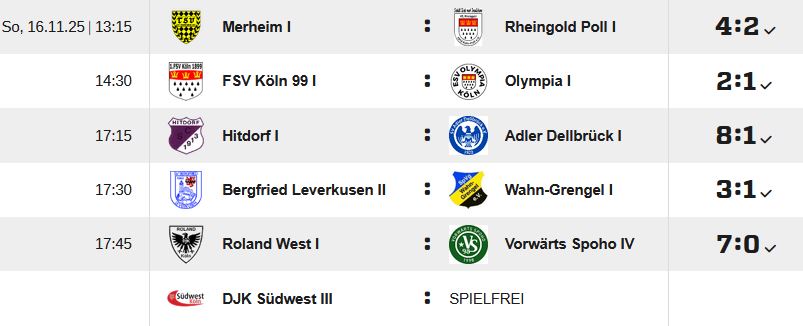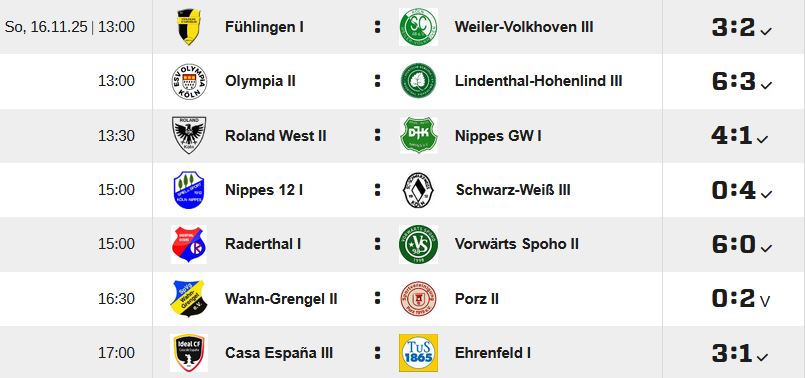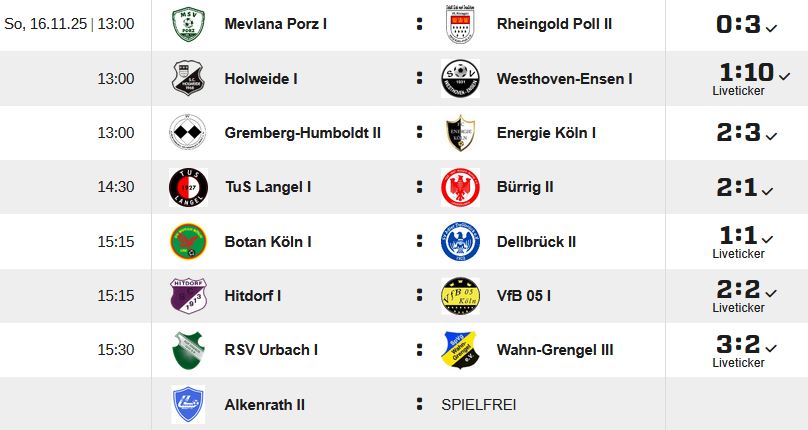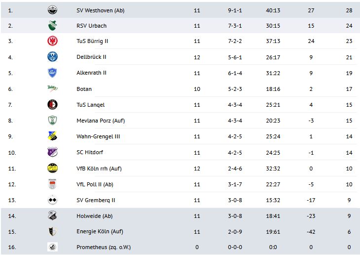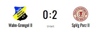 Das langersehnte kleine Porzer Derby zwischen der SpVg. Wahn-Grengel II und der SpVg. Porz II endete am grünen Tisch. Der Tabellenletzte aus Wahn trat nicht an, womit die Punkte direkt auf das Konto der Orman/Sirin-Elf nach Porz gingen. Am kommenden Sonntag sind wegen des Feiertags keine Spiele angesetzt.