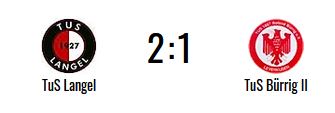 Der TuS Langel kam im gestrigen Heimspiel gegen Roland Bürrig zu einem überraschenden 2:1 (0:0)-Heimerfolg. Damit machte die Altrock-Elf nicht nur wichtige Punkte gut, sondern sorgte auch dafür, dass die Leverkusener den 2. Tabellenplatz an den RSV Urbach abgeben mussten. Am Langeler Lido war es Schüller mit einem Doppelschlag (70./73.), der den TuS auf die Siegerstraße brachte.