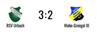 Der RSV Urbach gewann in der Woche das Nachholspiel beim FC Energie Köln mit 7:0. Im gestrigen kleinen Porzer Derby vs. die SpVg. Wahn-Grengel III ergatterte die Elf von Trainer Wirotius einen weiteren 3:2 (2:2)-Erfolg, der erst in der Nachspielzeit bewerkstelligt wurde. Bilgü mit einem Doppelpack und Nifkhush und Khuder sorgten für die gerechten Pausenstand.