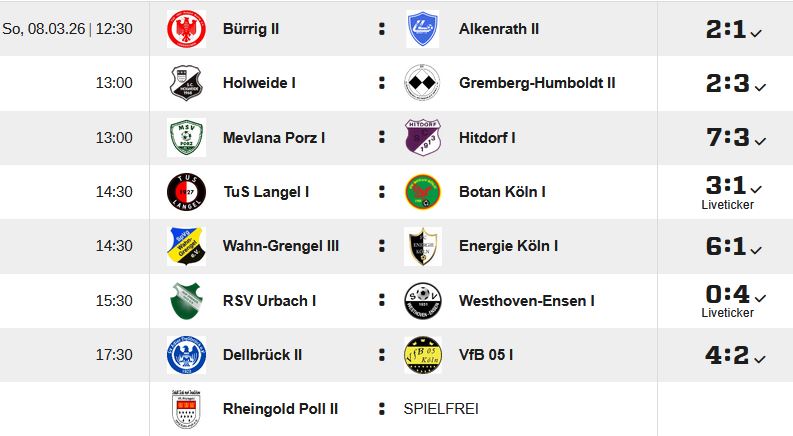 Start Aktuelles Porzer Fussballticker *** KREISLIGA C2 + C3 und Damen *** Day 18... AktuellesFußballKreisliga C Porzer Fussballticker *** KREISLIGA C2 + C3 und Damen *** Day 18 *** 09.03.2026 Von Werner Kilian - 09.03.2026 Kreisliga C *** Staffel 3 Kreisliga C *** Staffel 3 Kreisliga C *** Staffel 2 DAMEN *** Kreisliga A