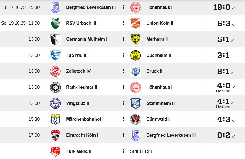 Start Fußball Kreisliga D Porzer Fussballticker *** Kreisliga D *** Day 08 *** 20.10.2025 FußballKreisliga D Porzer Fussballticker *** Kreisliga D *** Day 08 *** 20.10.2025 Von Werner Kilian - 20.10.2025 Kreisliga D *** Staffel 2 Kreisliga D *** Staffel 4