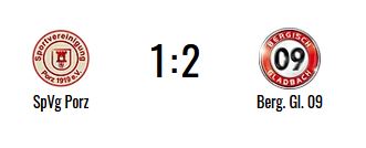 Die SpVg. Porz verlor ihr letztes Vorrundenspiel gegen den SV Bergisch Gladbach 09 vor eigenem Publikum mit 1:2 (0:2). Die Elf von Trainer Jonas Wendt überwintert damit auf Rang 12 im Tableau und hat dabei 5 Punkte Vorsprung auf den ersten Abstiegsplatz. Der Tabellenführer SV Bergisch Gladbach 09 hat hingegen seine überragende Hinrunde in der Mittelrheinliga mit einem weiteren Auswärtssieg gekrönt und sich vorzeitig zum Herbstmeister gekürt. Beim Erfolg bei der SpVg. Porz legte die Mannschaft von Trainer Kevin Kruth den Grundstein bereits früh, musste am Ende aber noch zittern.