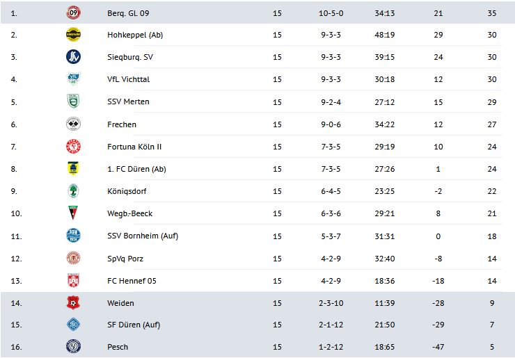 Mit dem Sieg in Porz geht der SV Bergisch Gladbach 09 als ungeschlagener Herbstmeister in die Winterpause. Die Mannschaft von Trainer Jonas Wendt kann mit der Vorrunde durchaus zufrieden sein. Sie hat zwar aktuell eine Niederlagenserie zu beklagen, hat aber als Tabellenzwölfter genügend Punkte vor der schwarzen Zone eingefahren. Die Mannschaft soll in der Winterpause weiter verstärkt werden.